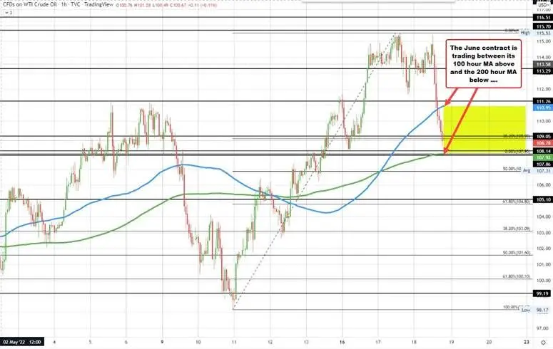 El último día de negociación del contrato de junio es el 20 de mayo (viernes). La mayor parte del comercio está ahora en el contrato de julio. Se cotiza con un descuento de $ 106.55 actualmente.