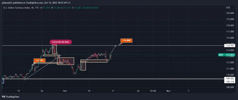 Gráfico del índice del dólar en temporalidad de 45 minutos fuente tradingview