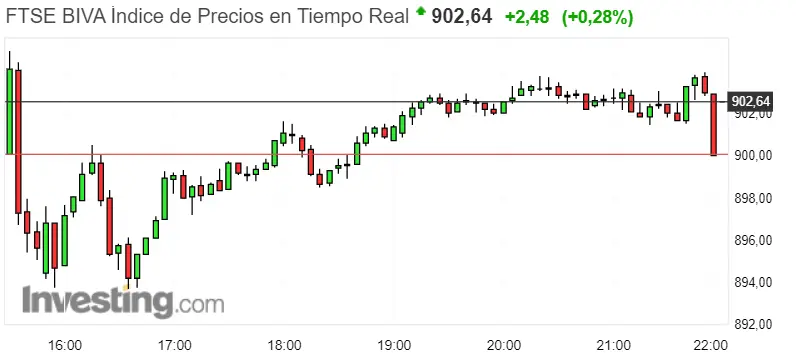 Gráfico del índice FTSE BIVA en un espacio de tiempo de un día