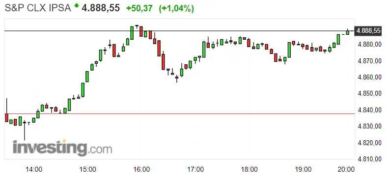 Gráfico del índice CLX IPSA en un espacio de tiempo de un día