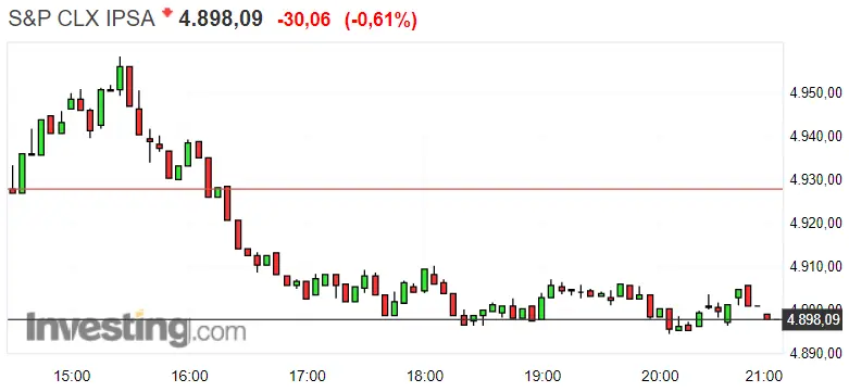 Como podemos suponer, el índice chileno está en medio de una bajada que reduce el nivel del índice chileno hasta unos 4898.09 puntos, que se van traduciendo en una bajada de un 0.61%, es decir; de 30.06 puntos. A las cotizaciones del índice S&P CLX IPSA le acompaña el nivel de soporte, tanto como el de resistencia. El primero de ellos lo podemos ver en 4894.85 puntos, mientras el segundo se queda por unos 4958.37 puntos.