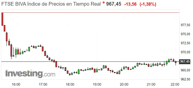Gráfico del índice FTSE BIVA en un espacio de tiempo de un día