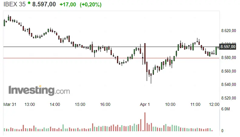 Gráfico del índice Ibex 35 en un espacio de tiempo de un día