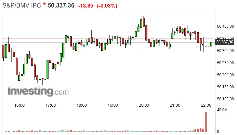Vemos el índice s&p bmv ipc en pendientes nuevamente decrecientes, que van dejando la bolsa mexicana de valores en rojo, con unas cotizaciones de unos 50337.36 puntos, tras bajadas de unos 13.85 puntos, es decir; del 0.03%. Las cotizaciones del momento actual van oscilando entre dos posiciones, se trata del nivel de soporte y el de resistencia, ambos valorados en 50158.33 y 50444.30 puntos respectivamente. ¿Qué le espera hoy a la bolsa mexicana de valores?
