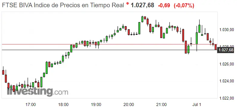 Gráfico en tiempo real del índice FTSE BIVA en un espacio de tiempo de un día