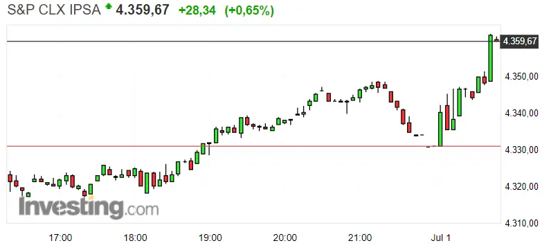 Gráfico en tiempo real del índice CLX IPSA en un espacio de tiempo de un día