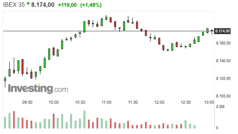 Gráfico del índice Ibex 35 en un espacio de tiempo de un día