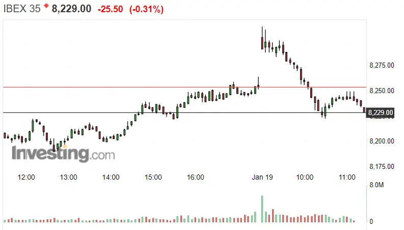 Gráfico del índice Ibex 35 en un espacio de tiempo de un día
