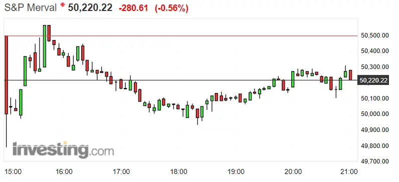 El índice argentino también se caracteriza por un tono rojo que nos da a entender que las últimas que predominan en él son las bajadas, actualmente de hasta 280.61 puntos, es decir; del 0.56%. ¿Cuáles son en tal caso las cotizaciones del momento actual? Nos vamos refiriendo a unos 50220.22 puntos en los que se mantiene el S&P Merval en el momento actual. Fijándonos en los niveles de resistencia y soporte de este concreto índice, veremos el nivel de resistencia en unos 50566.19 puntos, mientras que el nivel de soporte pertenece a unos 49933.20 puntos. Anterior a ello vemos un salto de unos 50378.50 a unos 50566.19 puntos.