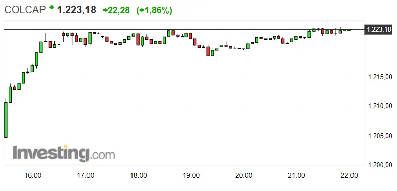 Gráfico del índice COLCAP en un espacio de tiempo de un día