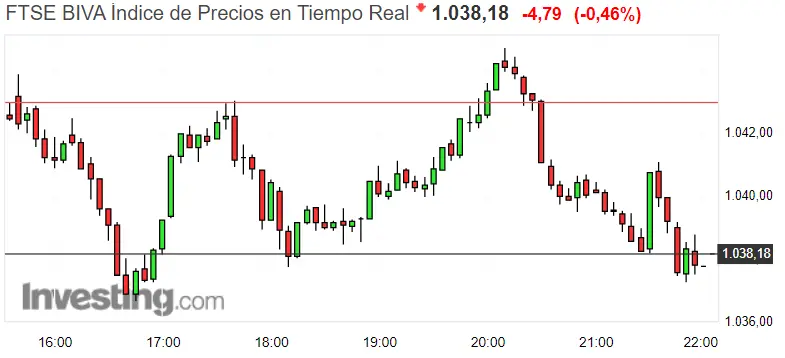 Gráfico del índice FTSE BIVA en un espacio de tiempo de un día