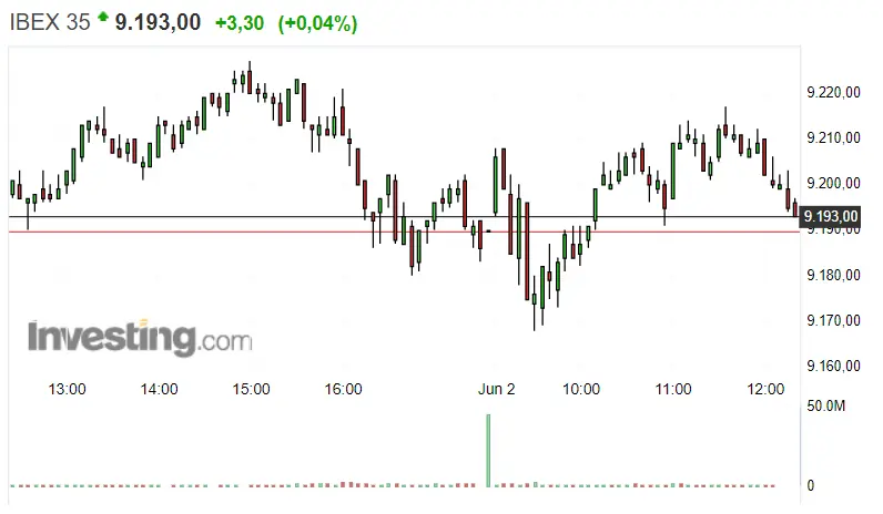 El día de hoy podemos observar claros impulsos alcistas en el Ibex 35, que lo animan en una muy irrelevante subida de un 0.04%, es decir en 3.30 puntos, hacia niveles como el de 9193 puntos del momento actual. Por tanto, podemos decir que las cotizaciones del índice español permanecen en verde, menteniéndose entre su nivel de soporte y el de resistencia. El primero de ellos se encuentra en unos 9168.3 puntos, mientras que el segundo se encuentra en 9216.98 puntos. Prestemos atención a los sucesos que también influyen en la bolsa española, tales como la publicación de los datos de la variación del desempleo en España o los datos de la subasta de obligaciones a 10 años.