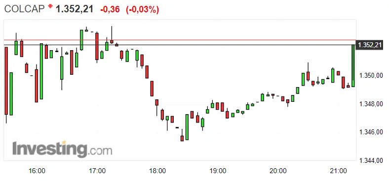 Gráfico del índice COLCAP en un espacio de tiempo de un día