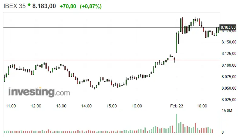 Gráfico del índice Ibex 35 en un espacio de tiempo de un día