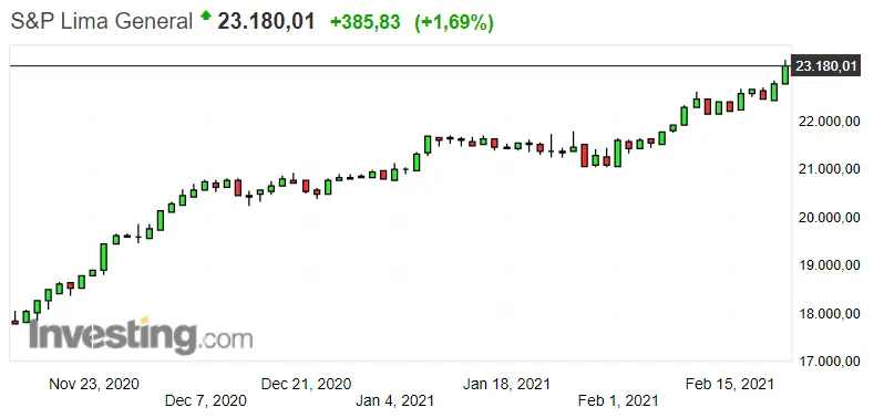 Gráfico del índice S&P Lima General en un espacio de tiempo de cuatro meses