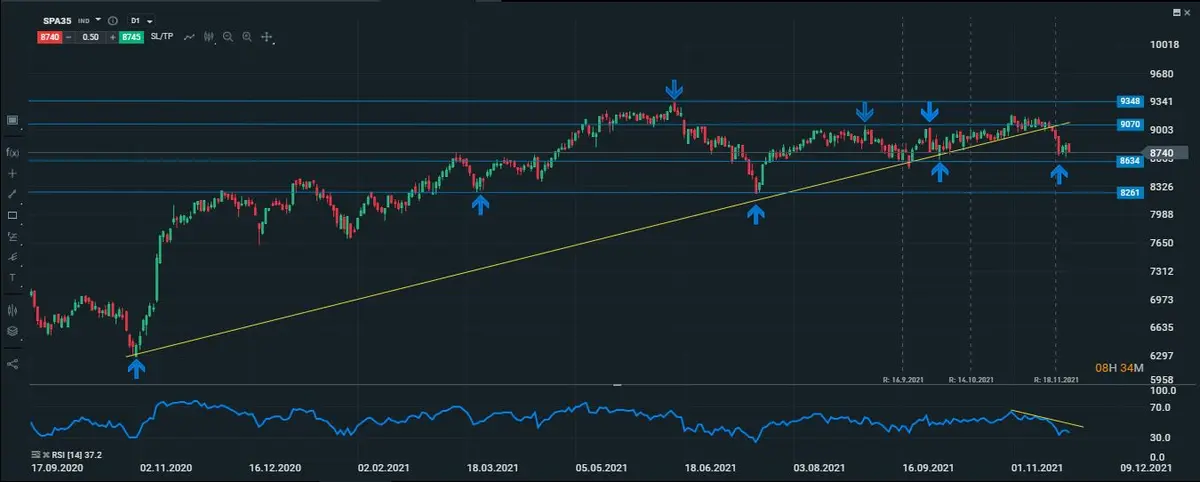 Gráfico actualizado del Ibex35 en una temporalidad diaria