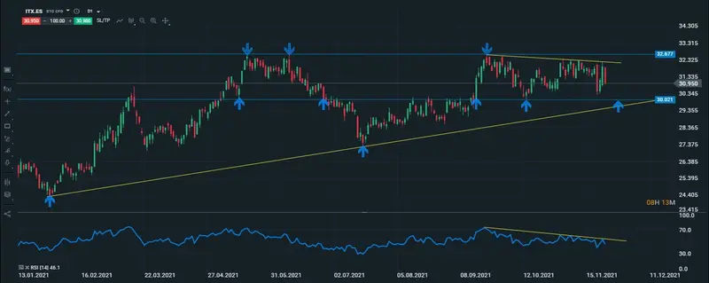 Gráfico actualizado de Inditex en una temporalidad diaria
