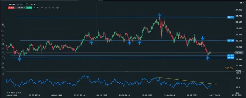 Gráfico actualizado de Grifols en una temporalidad semanal