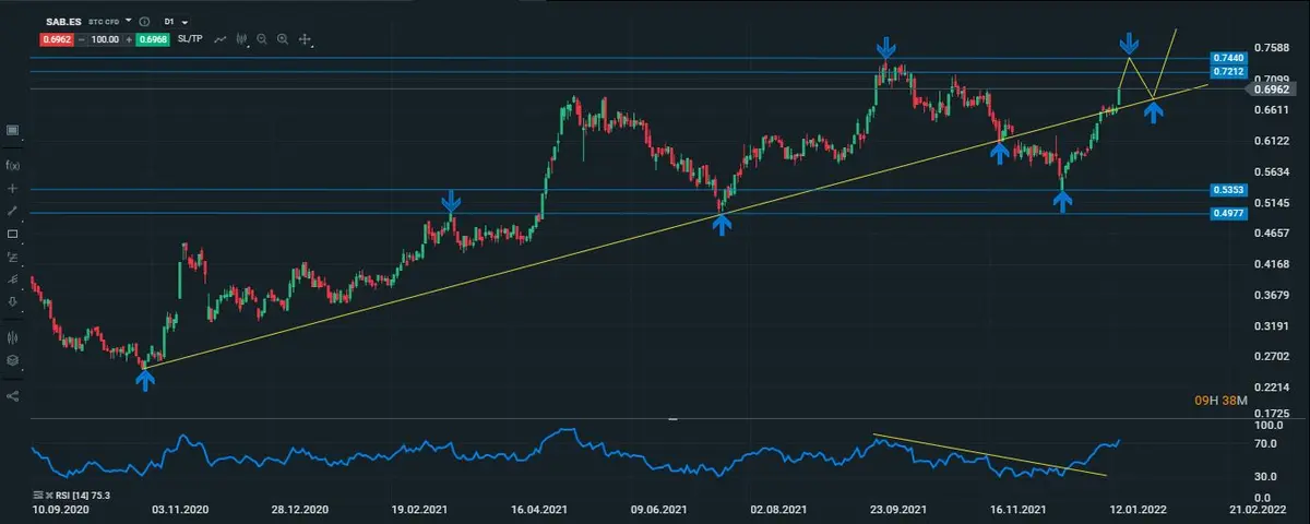Gráfico actualizado de Banco Sabadell en una temporalidad diaria