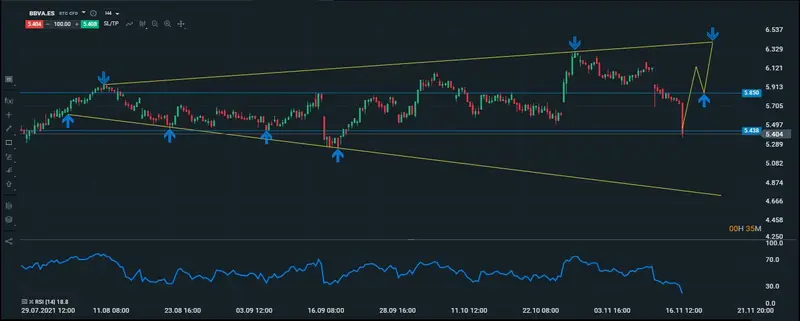 Gráfico de la acción del BBVA, en una temporalidad intradiaria