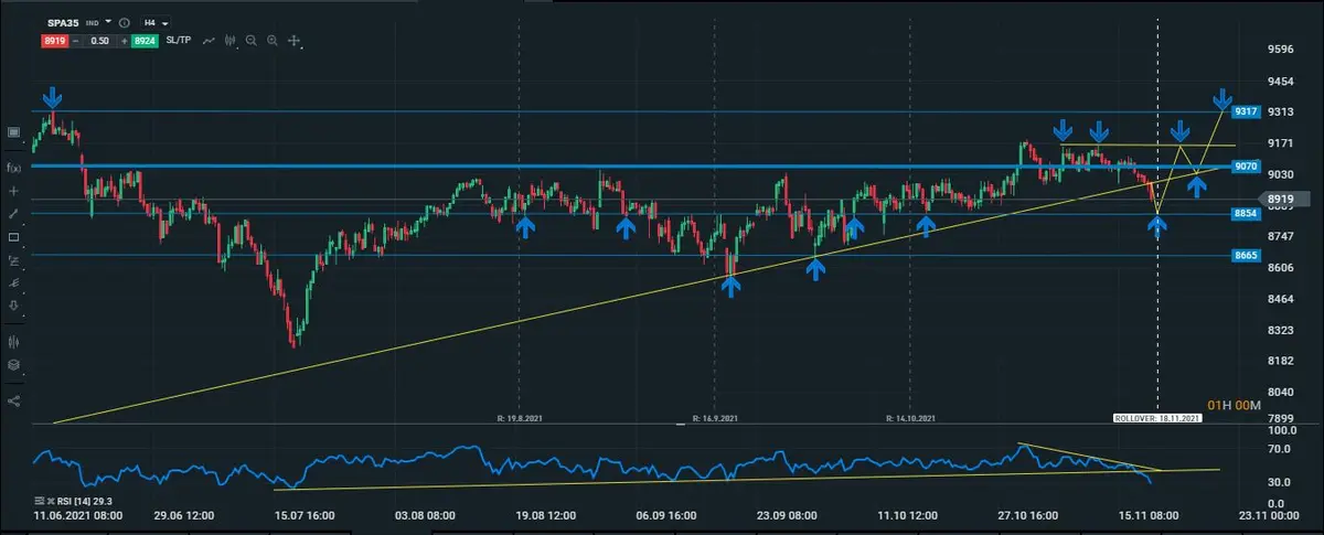 Gráfico del IBEX35, en una temporalidad intradiaria