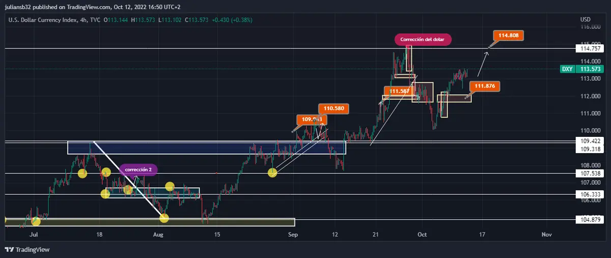 El aumento del IPP se verá reflejado en el consumidor final, por eso va influir mucho en la inflación y al no ceder terreno los índices al productor se ejerce una presión inflacionista y es lo que está observando la Fed para tomar decisiones en política monetaria, al conocerse los daots del IPP provocaron una subida del dólar , el DXY sube 0.10% y se ubica en la zona de los 113.517, los próximos niveles a vigilar son los máximos de este año en la zona de los 114.808