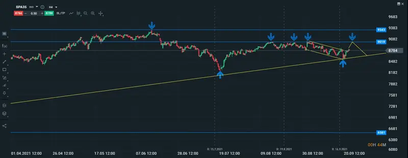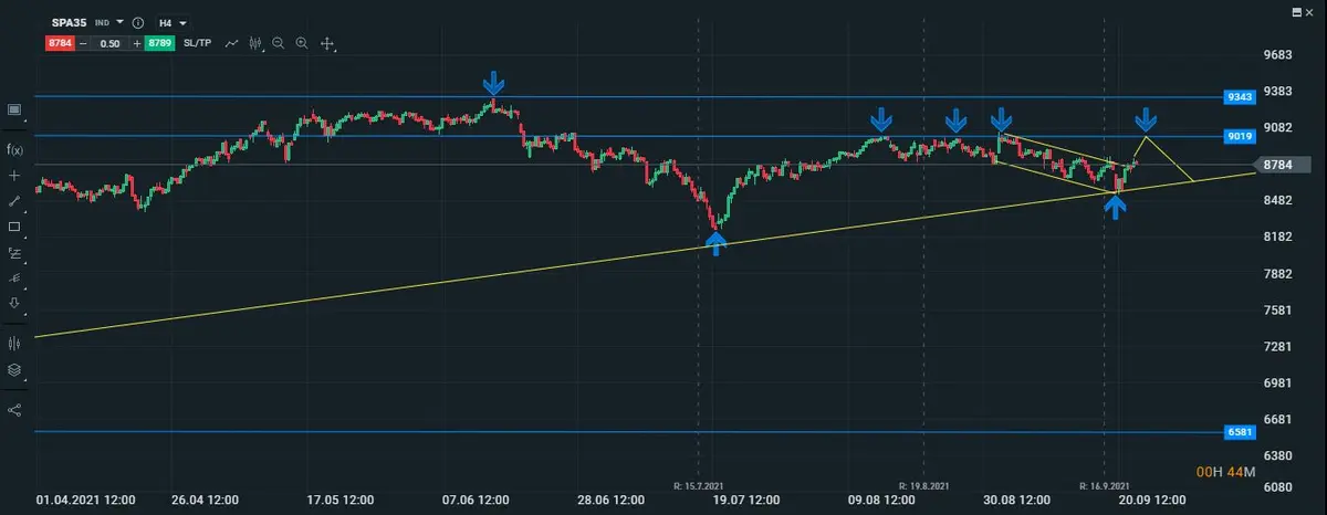 El índice español (IBEX35), queriendo remontar tras varias sesiones en las que sólo figuraban velas rojas, ante la noticia de que EVERGRANDE se hará cargo de sus pagos, ¡Tal parece ser que el IBEX35 se lo está tomando muy bien!