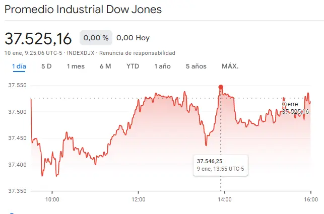 Gráfico de las cotizaciones del índice Dow Jones del mercado de Wall Street en un espacio de tiempo de un día