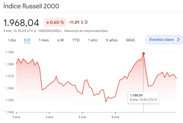 Gráfico de las cotizaciones del índice Russell 2000 en un espacio de tiempo de una semana