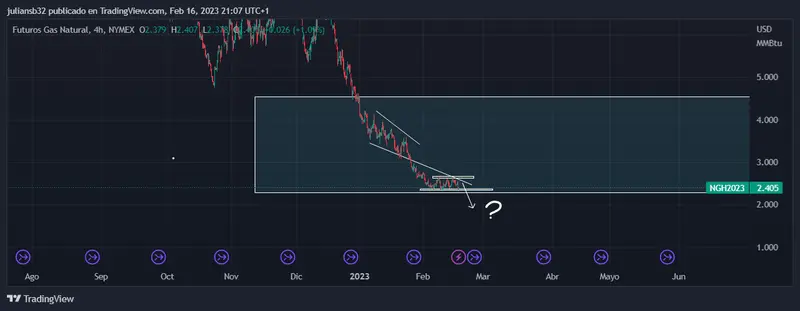 El precio del gas natural en la sesión de hoy baja a la zona de los 2,407 USD, lo que representa una bajada de -0,064 USD y una variación negativa de -2,59%. El precio de gas natural dependerá en gran parte de este año de los limitantes de la oferta y de la especulación de la reactivación de la economía china, la cual puede ayudar a empujar el precio del gas natural.