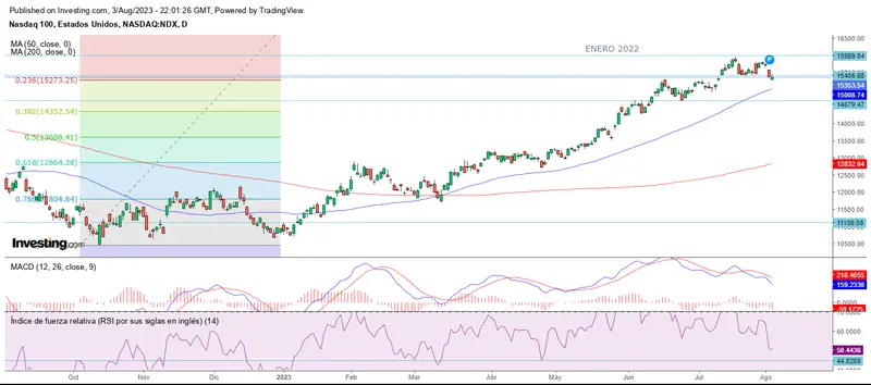 La fuerte semana de corrección en el Nasdaq empieza el viernes con algo de esperanza en verde en los 15.353 puntos. Por debajo del soporte que habíamos marcado.