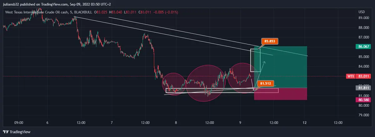Grafico del petróleo de referencia WTI en temporalidad de 5 minutos fuente tradginvew