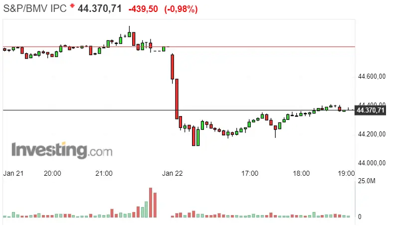 Gráfico del índice S&P / BMV IPC en un espacio de tiempo de un día