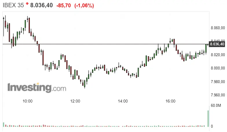 Gráfico del índice Ibex 35 en un espacio de tiempo de un día
