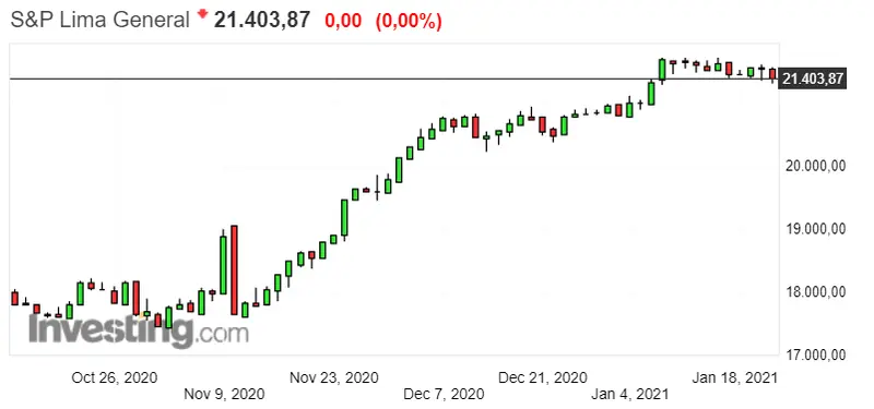 Gráfico del índice S&P Lima General en un espacio de tiempo de 4 meses
