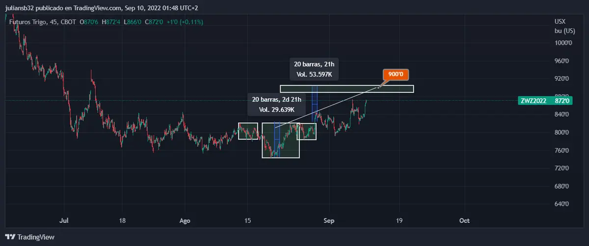 Gráfico del trigo en temporalidad de 45 minutos fuente tradingview
