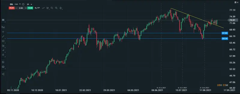 Aunque si valoramos los movimientos bajistas que realizó ayer el activo, la realidad es que el precio del petróleo no se vió muy afectado, incluso si observamos su gráfico diario, veríamos que el movimiento a la baja ha sido tan solo el 2% de su valor, y que actualmente ya lo ha recuperado.