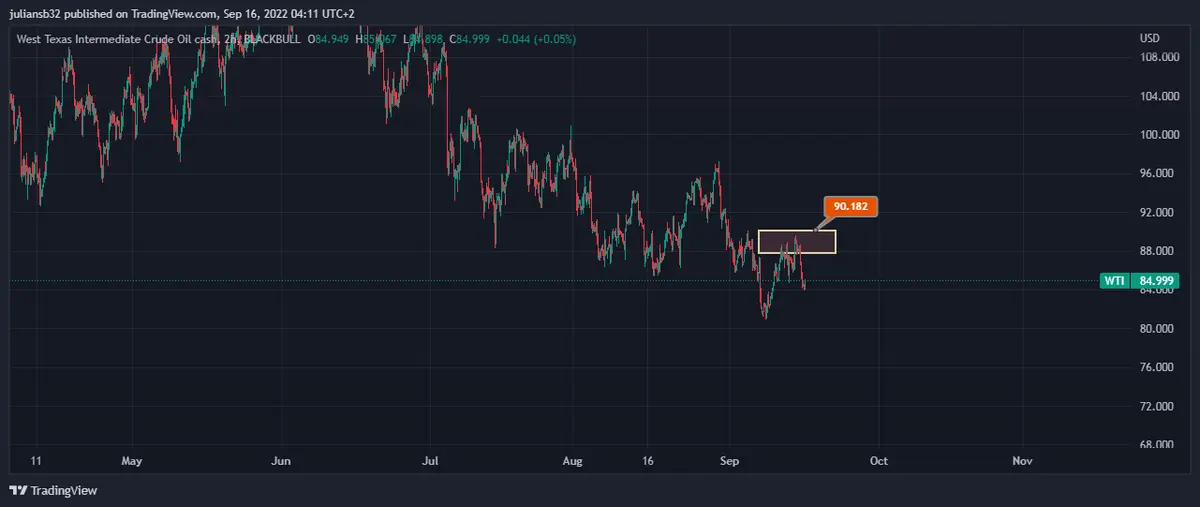 El precio del petróleo WTI no pudo romper la zona de los 90 USD.