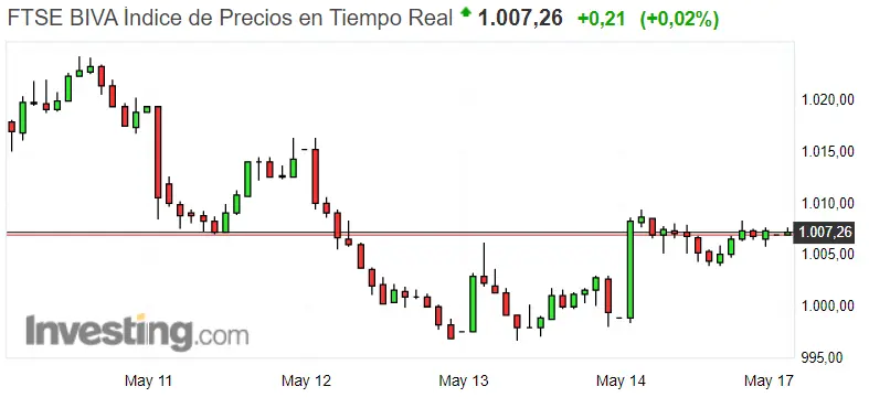 Gráfico del índice FTSE BIVA en un espacio de tiempo de siete días