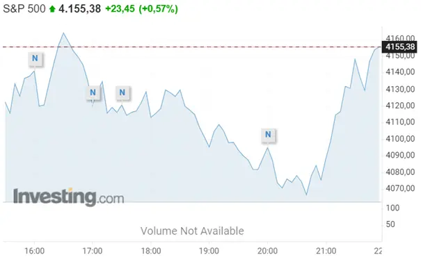 El índice SP500 aperturó con un valor de $4.132,70 a las 15:30 pm del 2 de mayo. Mientras que por otro lado, estaría cerrando a las 22:00 pm con un monto total en $4.155,38. Dando consigo ganancias al valor de (+ 0,57%).