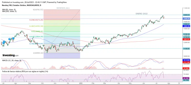 El Nasdaq cerraba la sesión del jueves a la baja en los 15.466 puntos, dejando atrás la resistencia de enero del año pasado.