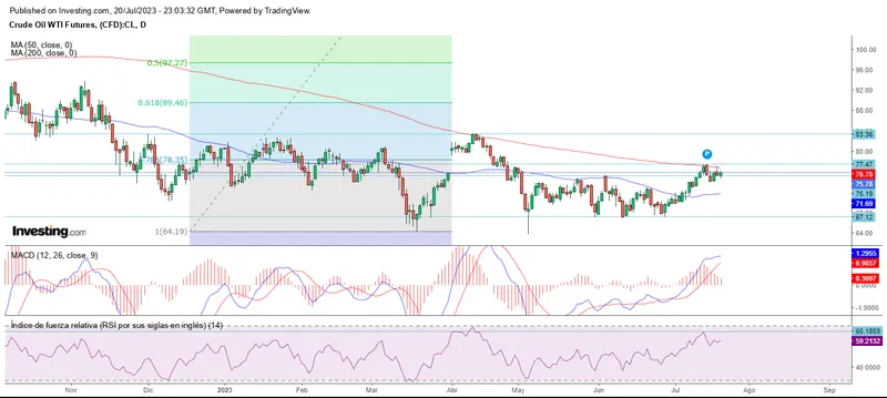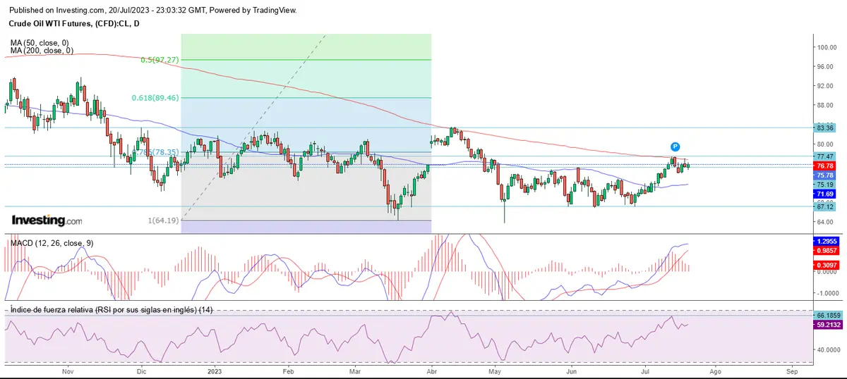 Podríamos fijar a los 77.47 dólares como una resistencia a superar.
