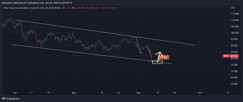 Grafico del petróleo de referencia WTI en temporalidad de 4 horas fuente tradingview