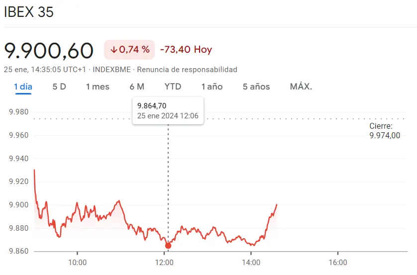 Gráfico de las cotizaciones del índice Ibex 35 en un espacio de tiempo de un día