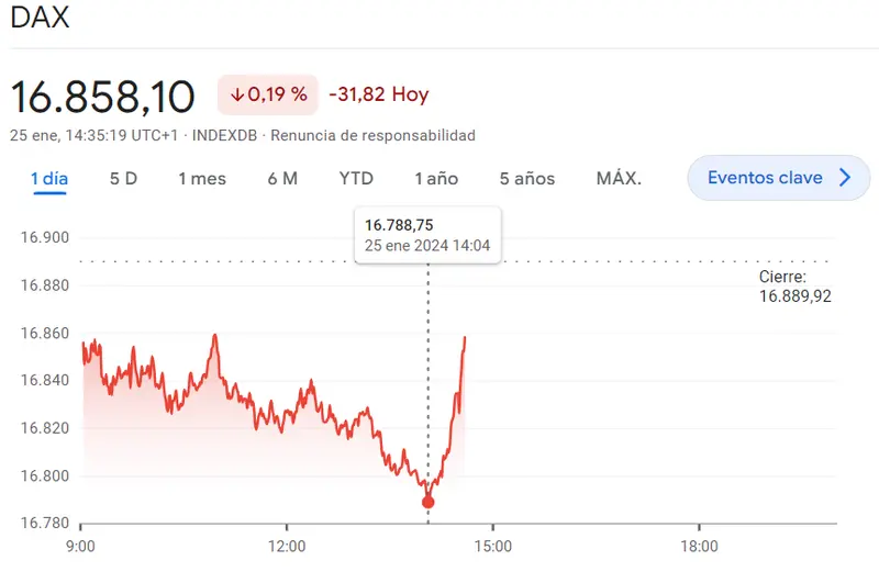 Gráfico de las cotizaciones de índice DAX 30 en un esapacio de tiempo de un día ´