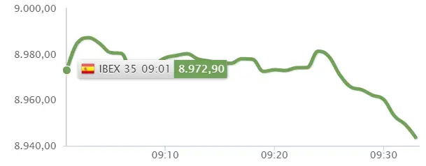 El Ibex 35 hoy va posicionándose en los 8961.80 puntos, no sin antes encontrar sus puntos de resistencia y soporte. La resistencia o el máximo lo vemos en unos 8989.90 puntos, mientras que el soporte o el mínimo lo vemos en los 8959.40 puntos.