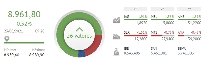 El día de hoy, lunes, 23 de agosto de 2021, nos encontramos frente a los datos del Ibex 35, que junto a las cotizaciones de 26 de sus 35 acciones van dejando el índice que forma la Bolsa de España en un bastante mal posicionamiento.