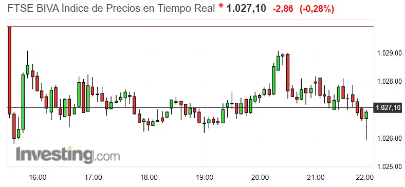 Gráfico en tiempo real del índice FTSE BIVA hoy en un espacio de tiempo de siete días