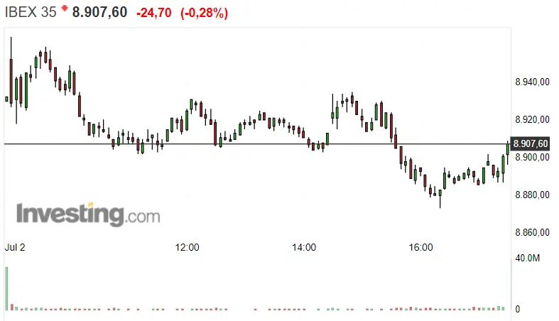 Gráfico en tiempo real del índice Ibex 35 hoy en un espacio de tiempo de un día
