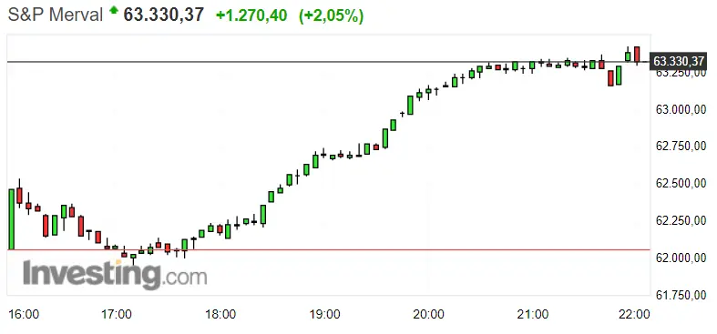 Como vemos en el gráfico de abajo, las cotizaciones del índice S&P Merval se mantienen con persistentes subidas durante los primeros días del mes de julio, con una situación actual de 63330.37 puntos. Lo que iba sucediendo desde hace un tiempo era una situación en la que de los 61878.59 puntos de soporte, el índice ascendía al actual. Si buscamos el valor del nivel de resistencia, encontraremos el de 65431.81 puntos. En el momento actual lo que vemos son subidas del 2.05%, es decir; de 1270.40 puntos.